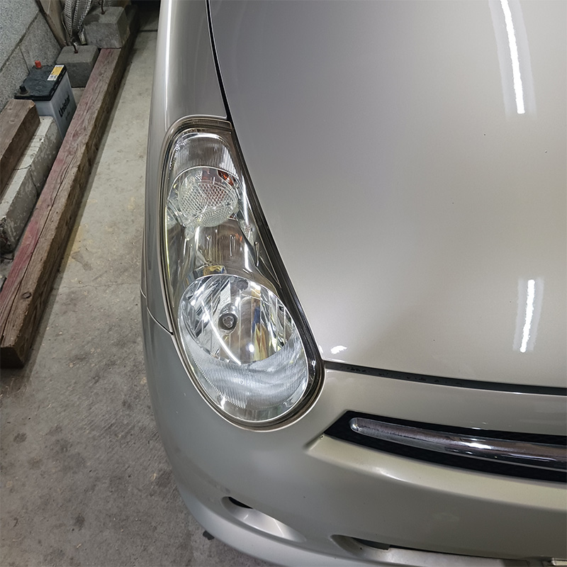紫外線などによって黄ばみ・くすんでしまったヘッドライトを綺麗に磨き、黄ばみやくすみを除去します。ヘッドライトがピカピカになることで見た目の印象も大きく変わり、夜間走行時の安全性向上にもつながります。